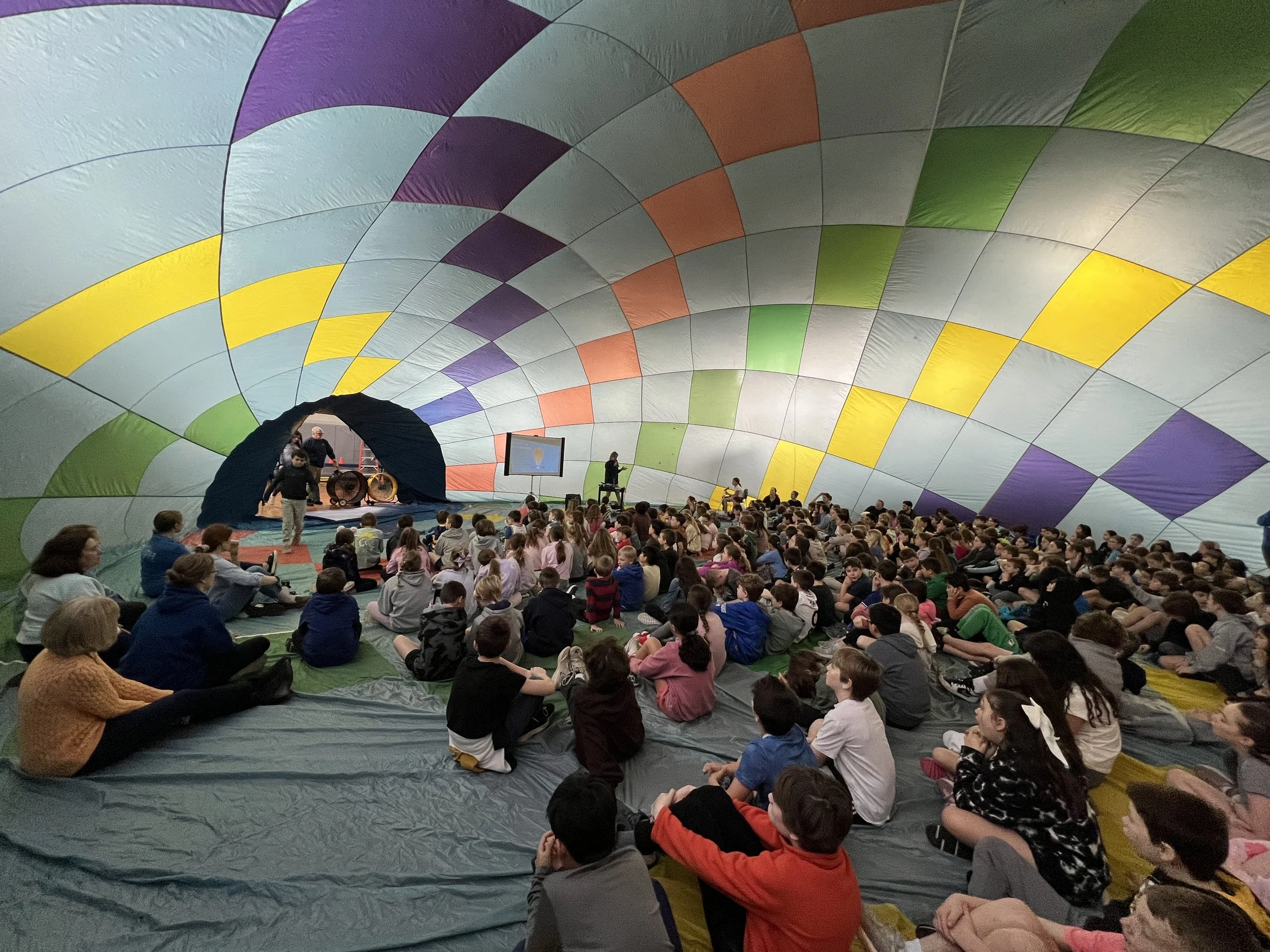 With the entire student body, watch as we hot inflate the balloon to demonstrate the phenomenon of hot air rising. Maybe even hop in for a short ride ;)